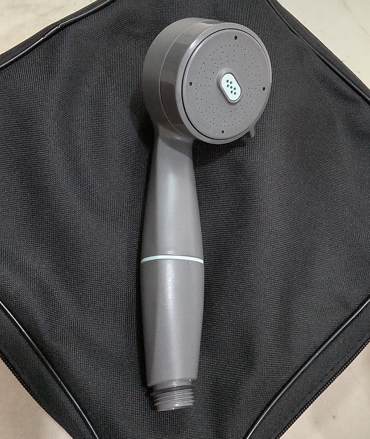 With my home shower, the water would hit the surface of my hair, but it didn’t feel like it reached down to the scalp. If I try to see it in a positive light, I guess it was gentle and easy on the skin. I’d accepted it as “normal,” but since there’s no easy way to measure the water pressure coming out of the hose, I couldn’t tell whether the real issue was the water pressure itself or the shower head that originally came with the place. I had bought two replacement shower heads on a whim before, but never really solved the problem. I even tried adjusting the little screw near the faucet that controls the water flow.