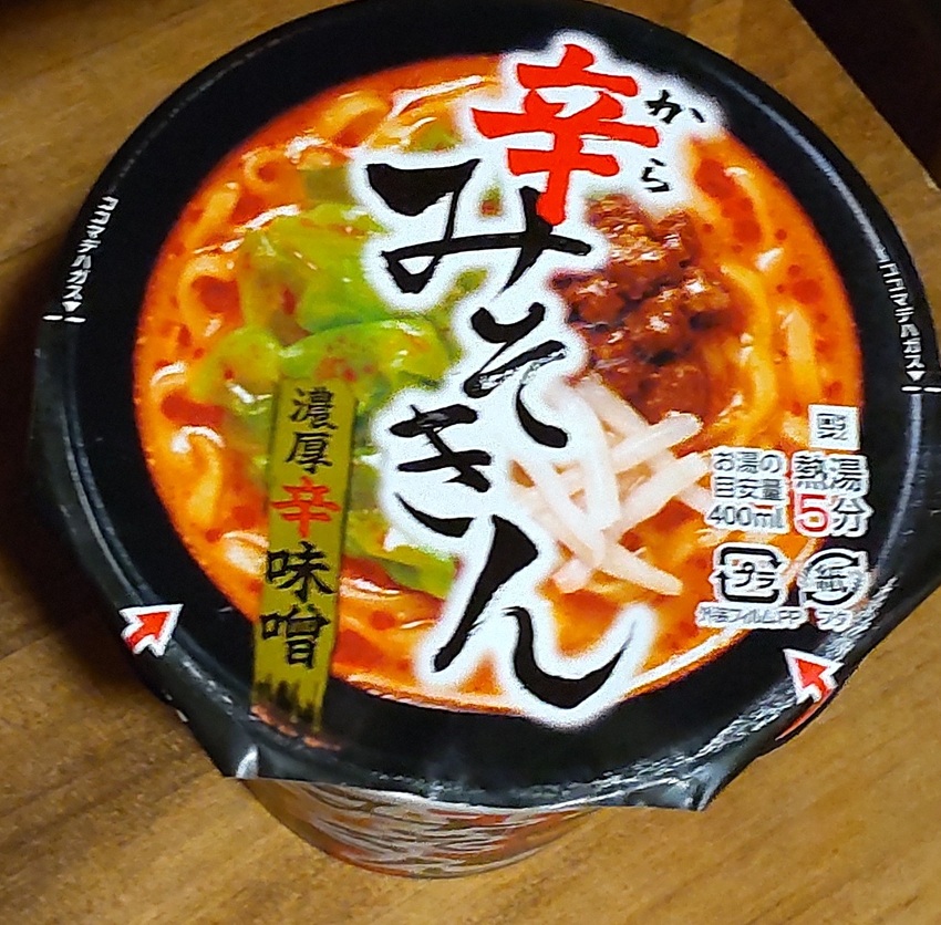 I found Kara(hot,spicy)Misokin rup ramen which is sold at Japanese convinience store.